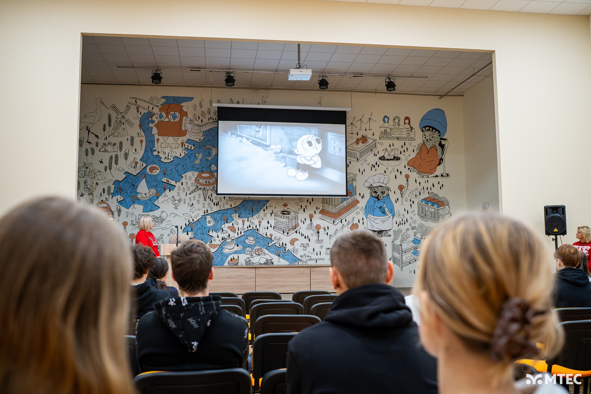 Students from the Marijampolė VET Center Gymnasium Department challenged themselves with unconventional activities and gained new skills. As part of the international project “Unplugging for a Brighter Future: Internet and Social Media Addiction,” the planned training activities aimed not only to familiarize students with the theoretical aspects of internet addiction but also to explore possible solutions. One of the methods used to creatively highlight the problem and seek solutions was 𝐭𝐡𝐞𝐚𝐭𝐞𝐫.