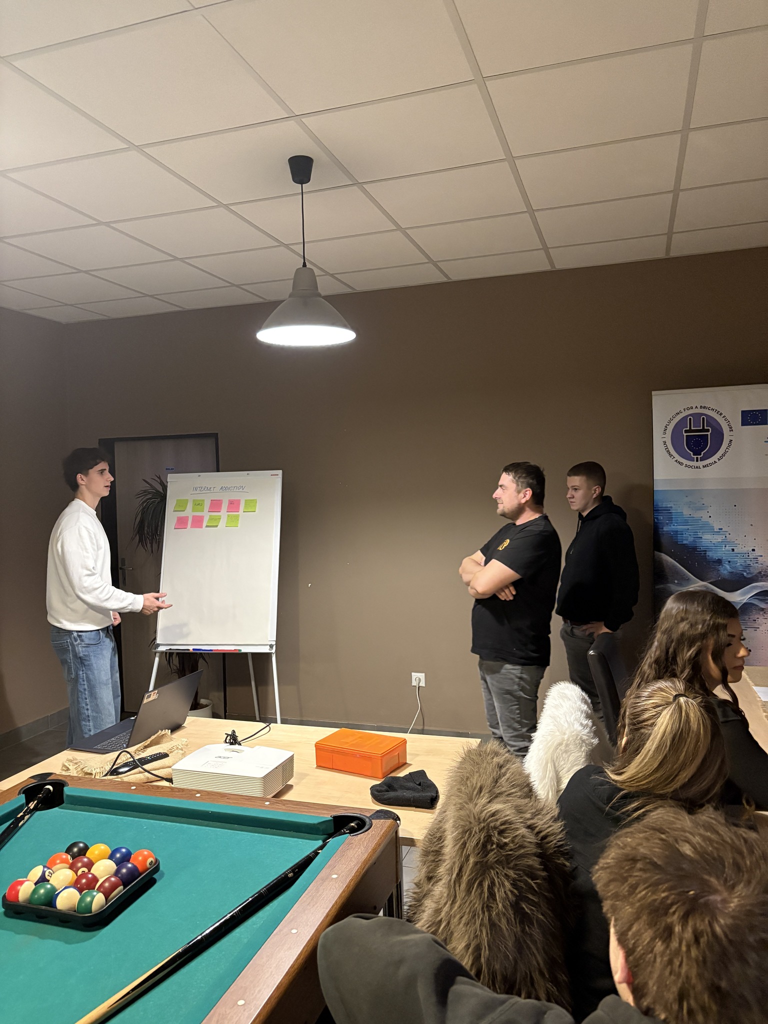 The workshop moved beyond a traditional lecture format, engaging participants in dynamic group activities designed to uncover the mechanics of Internet and Social Media Addiction (ISMA). Together, the group worked to identify subtle warning signs, such as the loss of time awareness, the neglect of real-world responsibilities, and the anxiety that often accompanies disconnecting. Through collaborative discussions, the students examined how online environments can distort one's perception of reality and self-image before shifting their focus toward empowerment. By brainstorming practical strategies for "digital detoxing" and exploring ways to cultivate a balanced lifestyle, the participants demonstrated that this new phase of the project is successfully motivating the younger generation to build a healthier, more controlled relationship with technology.