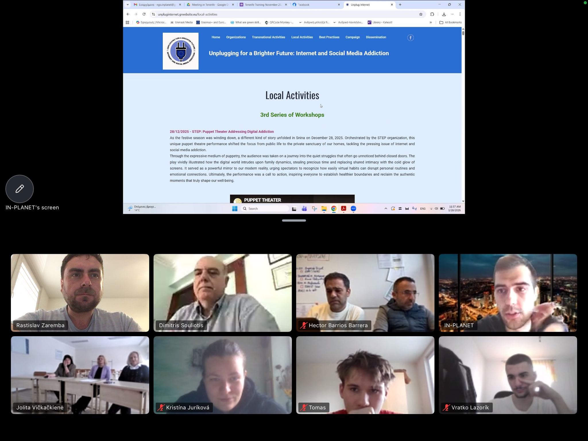 From 26 to 28 November 2025, partners of our Erasmus+ KA210 Youth Project gathered in Santa Cruz de Tenerife for the 3rd LTTA “Education for Life.” Across three days, participants explored the challenges of internet and social media addiction through interactive lectures, creative theater methods, collaborative discussions, and engaging activities such as puppet creation with recycled materials and a public puppet theater performance.